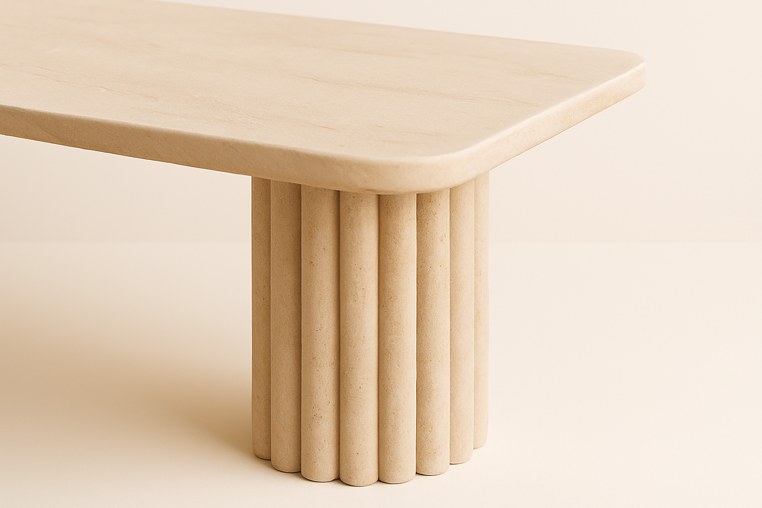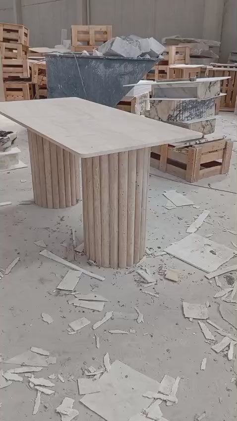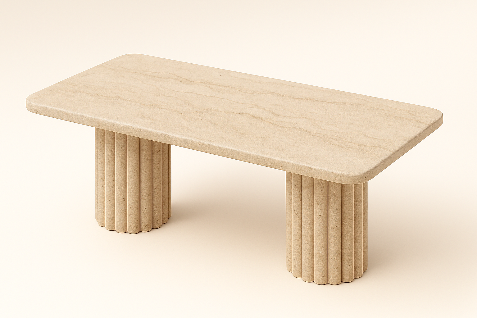 The CANOVA Travertine Console Table is a sculptural piece that bridges classical architecture with modern minimalism. Handcrafted from premium Turkish travertine, it features a refined rectangular top supported by twin fluted pedestal bases reminiscent of neoclassical columns. With its timeless elegance and solid natural stone construction, CANOVA works beautifully as a console, writing desk, or statement table in luxury residences, boutique interiors, or curated office spaces.